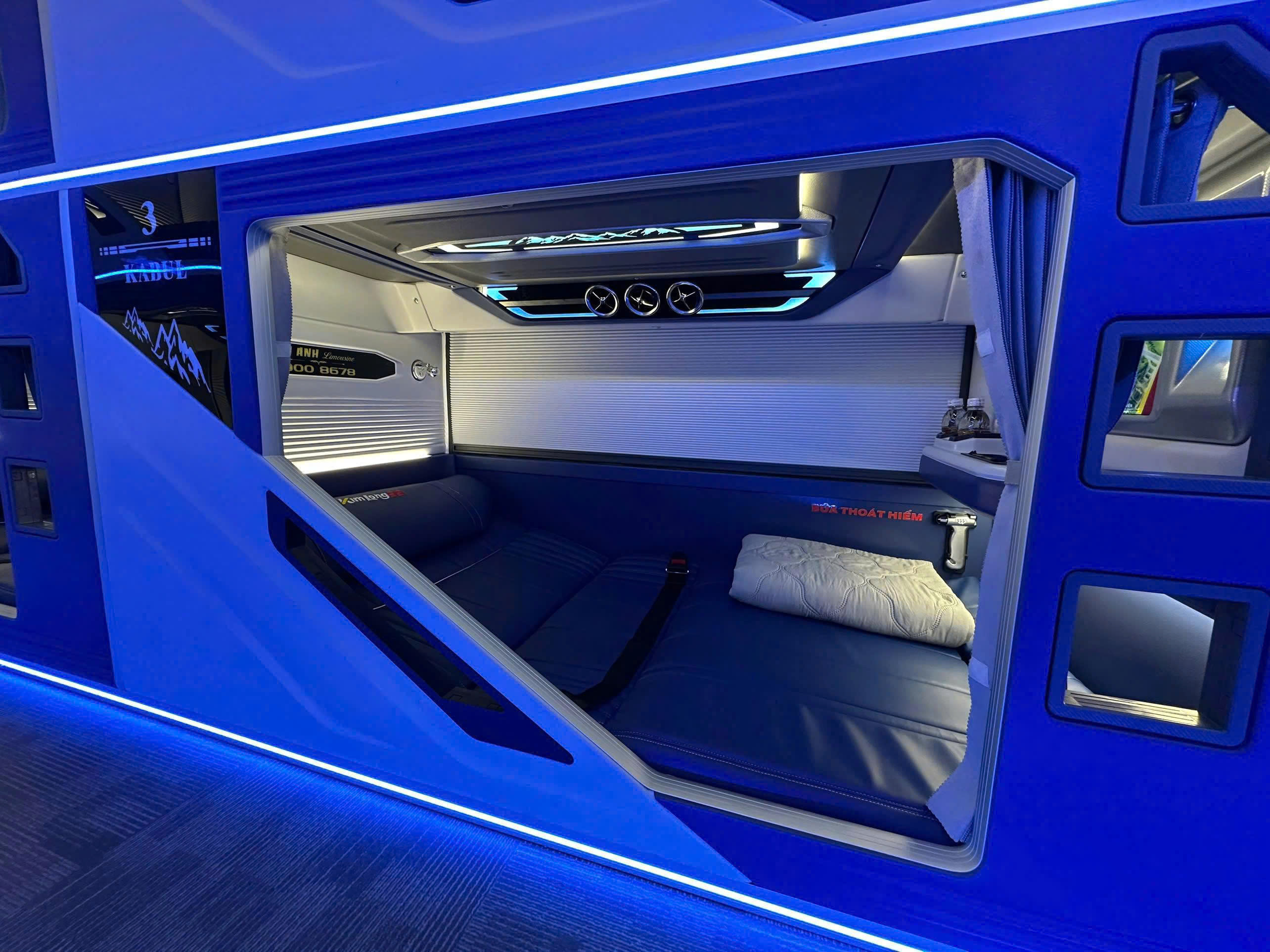 Xe thường được trang bị các tiện ích như: Ghế/giường bọc da cao cấp, Wifi tốc độ cao miễn phí, TV màn hình LED, ổ cắm sạc USB tại mỗi vị trí, hệ thống máy lạnh ổn định, khăn lạnh, chăn mỏng, nước uống.